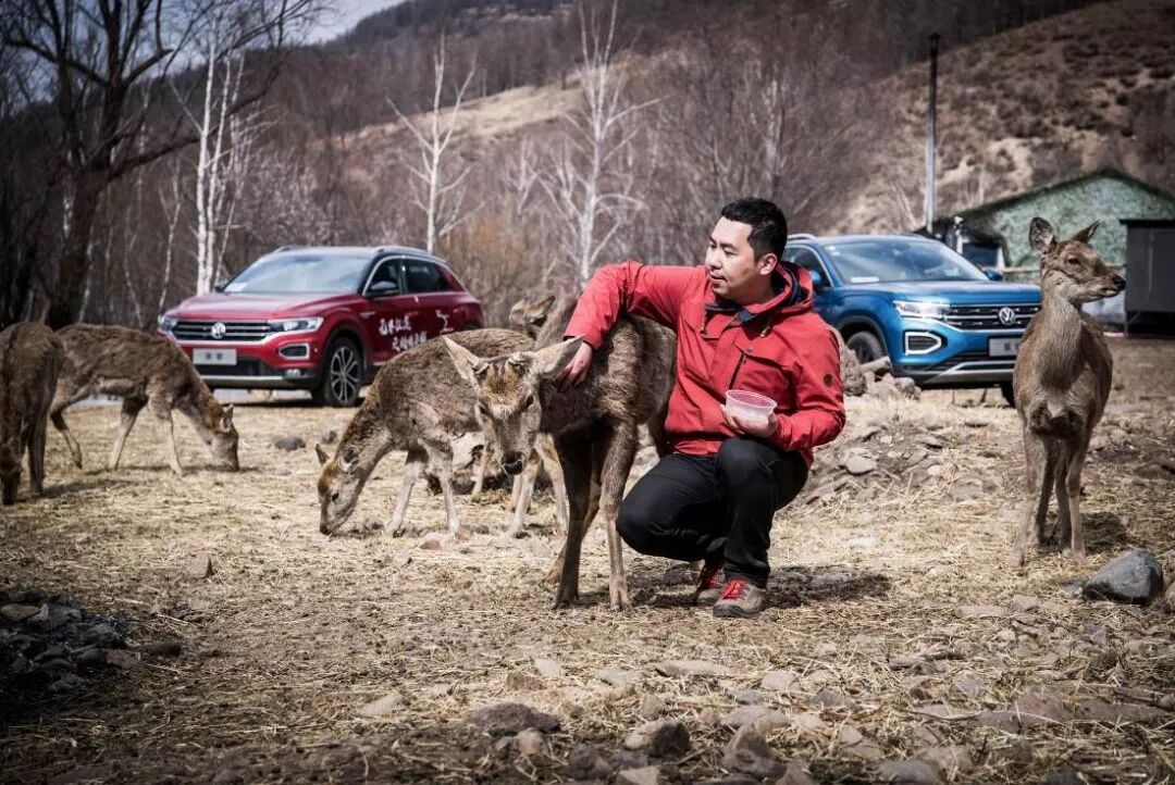 半山腰玩耍觅食的小鹿并不怕人,反而和人很亲近。鹿是有灵性的动物,能通晓人的善意,抓一把吃食送到嘴边,就能摸它脑袋,抱抱脖子,尽情享受“吸鹿”的乐趣。