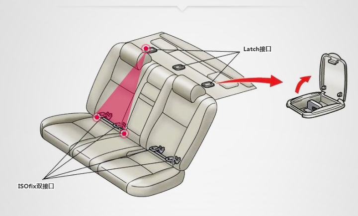 当前的安全座椅接口分为安全带固定、isofix接口和LATCH固定,其中欧标isofix接口是硬连接的卡钳,可以匹配上拉带或者支撑腿,能有效限制碰撞时安全座椅的位移,强烈推荐。