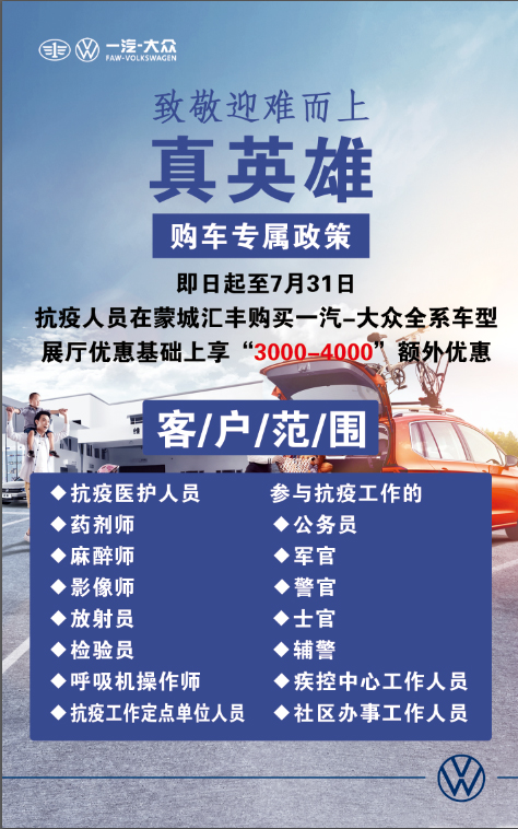 汇聚蒙城汇丰一汽大众、震撼价格、超级大礼等您来拿