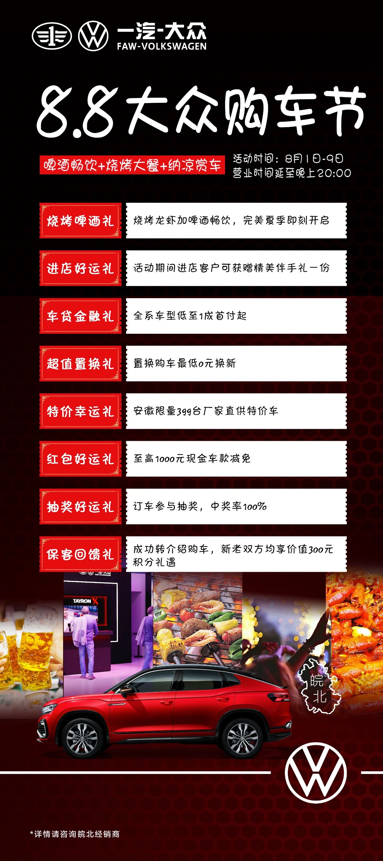 啤酒畅饮+烧烤大餐+纳凉赏车 8.8大众购车节盛大开启
