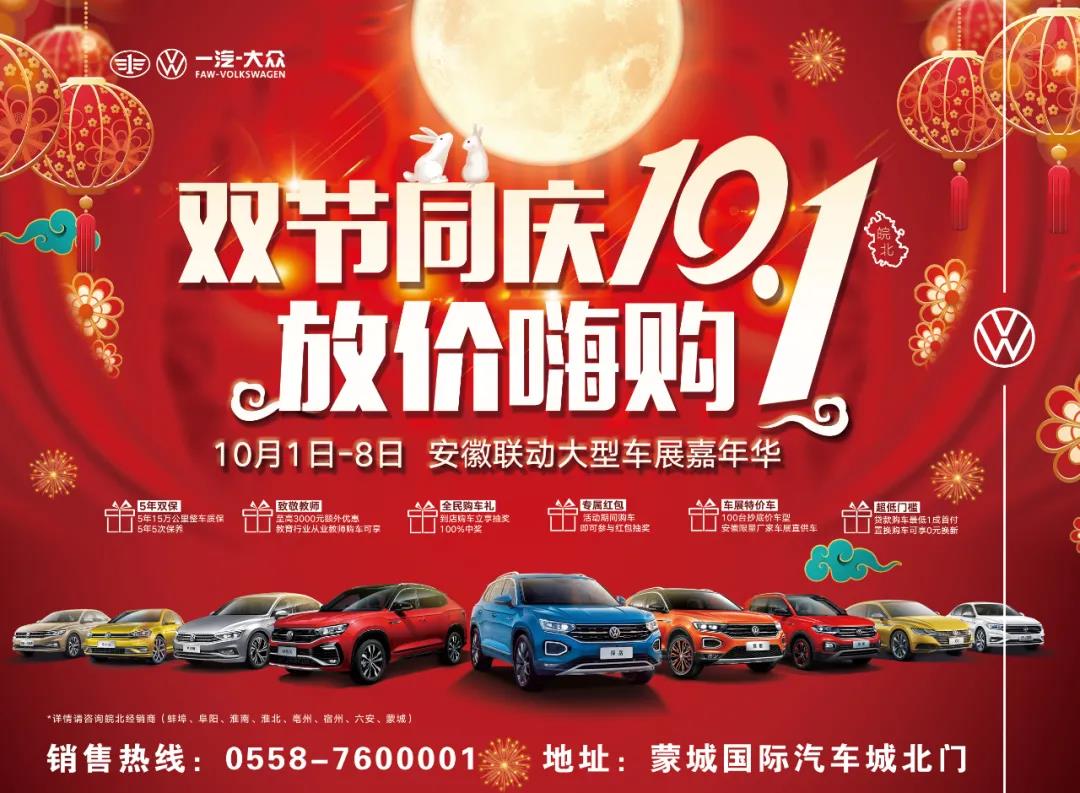 我选择10月1-8日!蒙城汇丰十一车展 !双节同庆放价嗨购 嗨翻全场=最佳购车时机!
