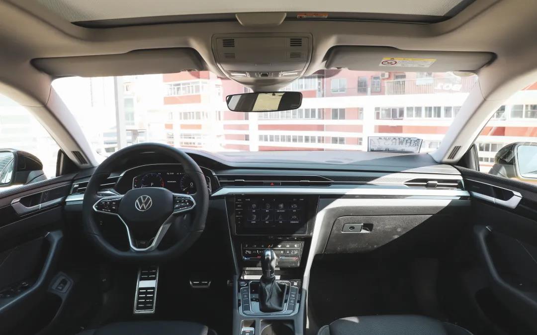 坐在CC的车厢中,可以看到它采用了R-Line风格的方向盘,两侧的按键为钢琴烤漆的风格,并且还支持触控滑动操作,质感要更强一些。。