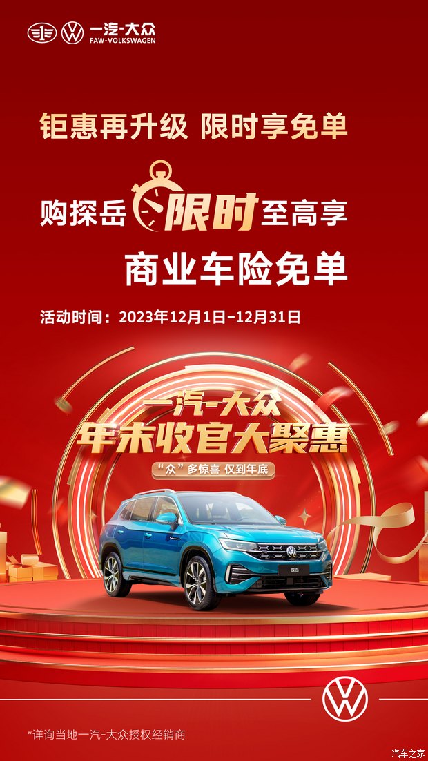 一汽大众蒙城汇丰钜惠在升级 购探岳迈腾至高享商业险免单