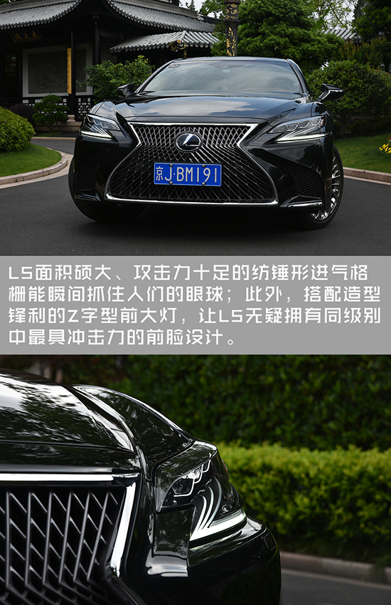 即使初见LS,其面积硕大、攻击力十足的纺锤形进气格栅也能瞬间抓住人们的眼球。据介绍,LS上全新造型的纺锤形中网拥有多达5000个不同的立面造型,不仅营造出了更丰富、立体、豪华的视觉感受,也蕴含了雷克萨斯对旗舰产品的心血。此外,搭配造型锋利的Z字型前大灯,与雕刻般的犀利线条,LS无疑拥有同级别中最具冲击力的前脸设计。