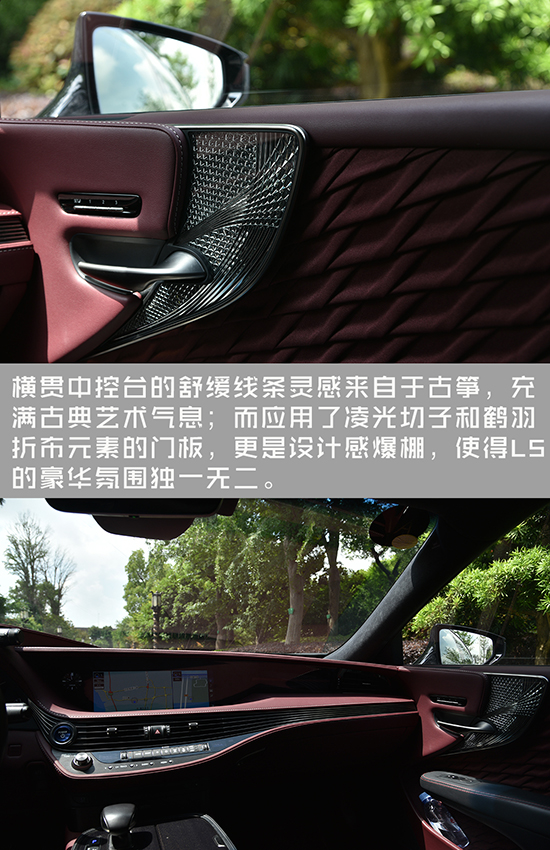 如果说LS的外观全面走向年轻化,那进入车内,LS的内饰则是将东方内敛、古典、精致的风格体现得淋漓尽致。整体采用横向布局的中控,使车内空间更显宽敞,而更令人难忘的则是点缀其中的各种精湛设计和工艺。
