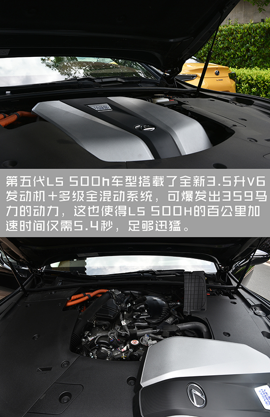 作为豪华旗舰轿车,外表之外,动力系统的表现同样重要。相比于前四代车型动辄4.0升以上的排量,记者本次试驾的第五代LS 500h车型,搭载的全新V6发动机排量“仅”为3.5升,但其在多级全混动技术的加持下,仍可爆发出359马力的动力,这也使得LS 500h的百公里加速时间仅需5.4秒,足够迅猛。