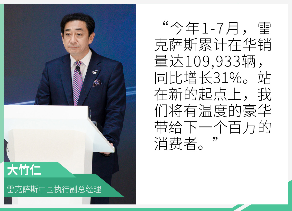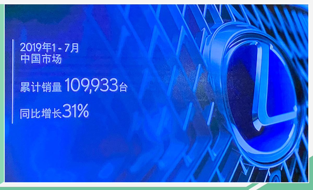 自2005年进入中国以来,雷克萨斯在华保持了14年的稳健增长,累计销量已突破100万辆。2019年8月2日,雷克萨斯中国执行副总经理大竹仁表示向网通社表示:“今年1-7月,雷克萨斯累计在华销量达109,933辆,同比增长31%。”如今雷克萨斯已站在新的起点上,接下来将大力深化品牌在华发展,随着新款RX/RXL以及LM即将上市,该品牌力求把有温度的豪华带给下一个百万的消费者。