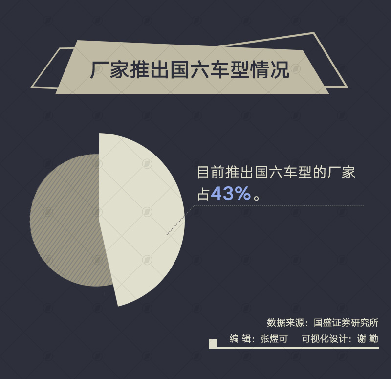 从车企厂家来看,近半车企仍无国六车型。