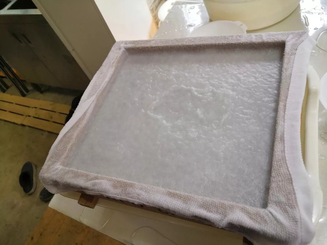位于东京都边缘地区,日之出町北大久野地区北大久野河畔的和纸工坊HINODE的国高老师讲到和纸是用楮树的树皮除去表面硬质的深色外皮,留下浅棕色且柔软的部分,将其捣碎成浆漂白去色后置入山泉水中手工打散至无硬结儿,在辅以从秋葵中提炼的黏液混合入纸浆,使用“摇动抄纸法”上纸屉,自然晾干制成。