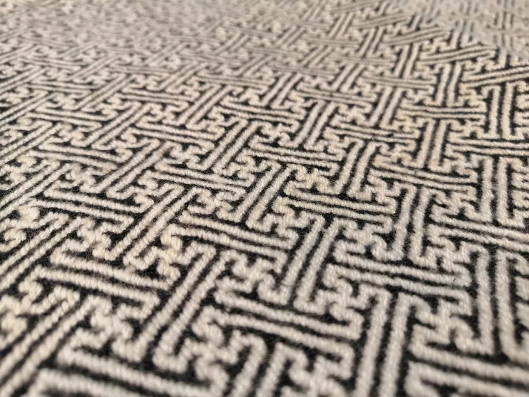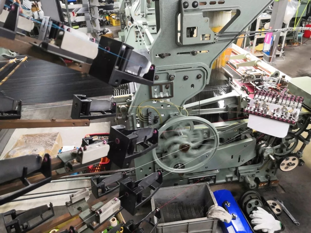 虽然,博多织已经大部分机械化生产了,但一台机器一天也只能织出20米简单纹饰的成品,而当一件博多织作品开始机械化织制的那一刻,你仅仅看到了匠人们为此付出的10%工作量,之前90%的工作量是在为这件作品拉线穿针,将少则7000根多则数万根细如发丝的经线一根一根的穿在织布机的机针上,每根线拉线系针的力道要完全一致,稍有差异将会导致作品织制过程中出现跳线,断线等问题,作品也就要报废重来了。