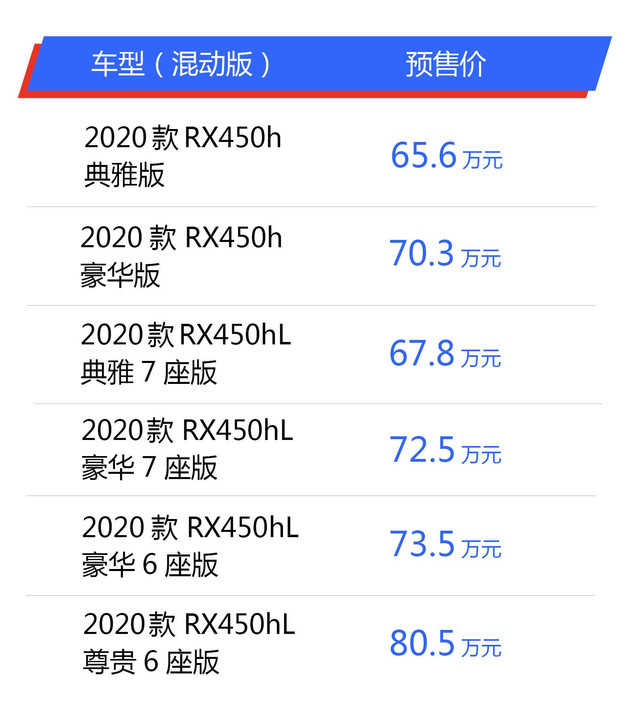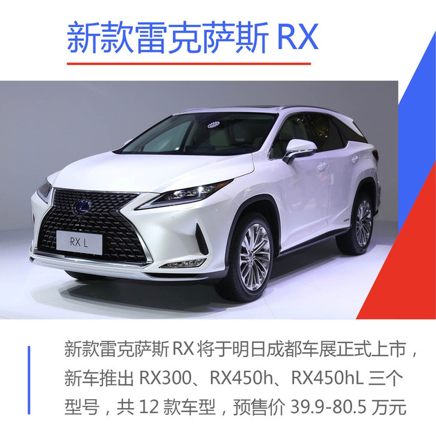 易车讯,新款雷克萨斯RX(2020款)将于明天开幕的成都车展正式上市,共推出12款车型,预售价39.9-80.5万。新车定位中大型SUV,搭载2.0T和3.5混动两款动力系统,包括RX300、RX450h以及加长车型RX450hL。