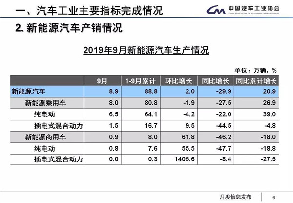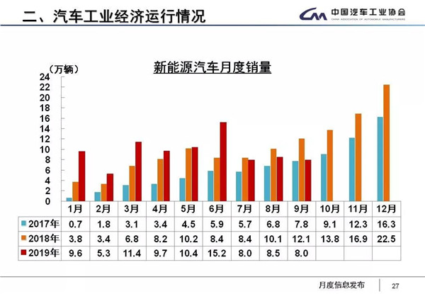 9月,新能源汽车产销分别完成8.9万辆和8万辆,比上年同期分别下降29.9%和34.2%。这已经是新能源汽车产销连续三个月的大幅下滑,引发各方关注。许海东认为,这主要是受补贴大幅退坡影响,补贴下降后,企业面临亏损,对新能源汽车大规模生产促销积极性降低。