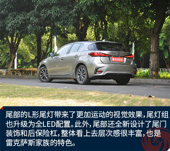 外观方面,2017款雷克萨斯CT 200h运动感十足,重新设计的大灯组,刀锋状的LED日间行车灯,看起来极为有神;同时前进气格栅造型更加具有立体感,镀铬边框也更换为分体式设计,从而更加突出运动感。全新的尾灯组造型看起来非常动感,内部采用LED光带进行搭配,非常彰显时尚。