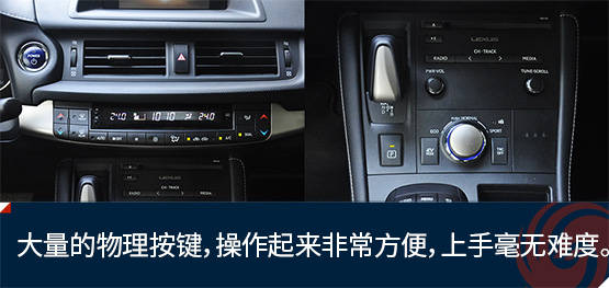 值得一提的是,CT 200h提供了三种驾驶模式,分别为经济、普通以及运动,只有在运动模式下发动机才会始终保持工作状态。得益于电动机的输出特性,新车动力输出的连贯性和迅速的反应确实相当撩人的,任何时候都不会让人感觉到动力匮乏,并且在感官上毫无涡轮增压车型的暴躁感。