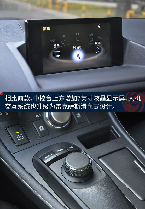 内饰上相比前款整体没有什么变化,黑色的内饰、简约的风格,当然还有雷克萨斯对内饰用料上的一贯高水准。在细节做工方面“雷克萨斯”也是颇有心得,严丝合缝的内饰衔接与真皮缝线的处理让你坐进车内会体验到很棒的高级感。