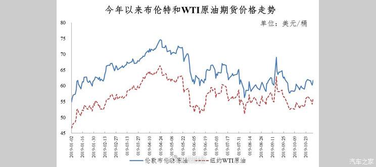 调价周期内,中美贸易谈判取得初步进展、欧佩克可能延续减产政策的消息,对油价产生提振作用。本轮减产措施到明年3月结束,欧佩克与俄罗斯等产油国计划12月初召开会议评估当前产量政策,有消息称在担忧原油需求继续疲软的情况下,欧佩克及其盟友考虑进一步降低产量。此外,美国石油钻机数量持续下降,也给油价带来支撑。平均来看,伦敦布伦特、纽约WTI原油价格分别为每桶60.92美元、55.31美元,分别比上轮调价周期上涨2.87%、3.51%。