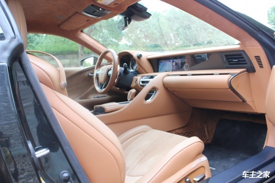 从驾驶室的风格可以看出LC500h的内饰更偏重豪华跟舒适感。内饰用料细腻,包裹独特的皮革质感,让人触感舒适。