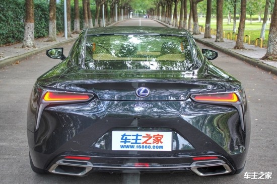 汽车尾部LC500h设计感非常强,通过线条勾勒出与进气格栅形状类似的纺锤体立体面。尾部凸起的小鸭尾设计、双边四处的镀铬排气口,运动中不失豪华。尾灯的设计跟大灯风格一样科技感非常强。