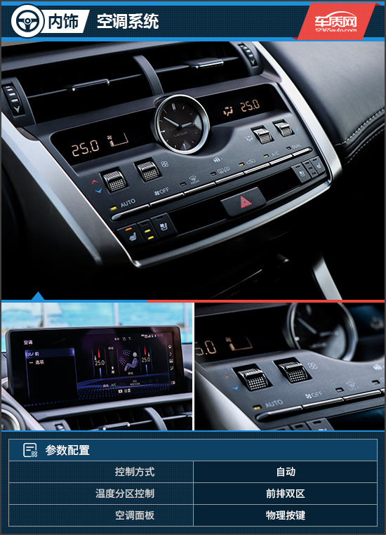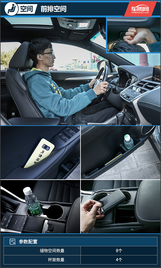 由于此次试驾车为NX 300顶配车型,所以配备了丰富的舒适性配置,如可三挡调节的座椅加热/通风、方向盘加热、三组座椅记忆、舒适进入、电动调节方向盘、自动大灯以及雨量感应式雨刷等诸多功能,完全符合其豪华品牌定位。