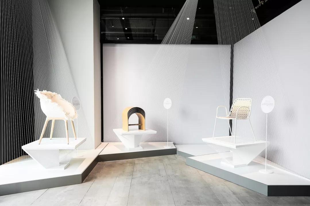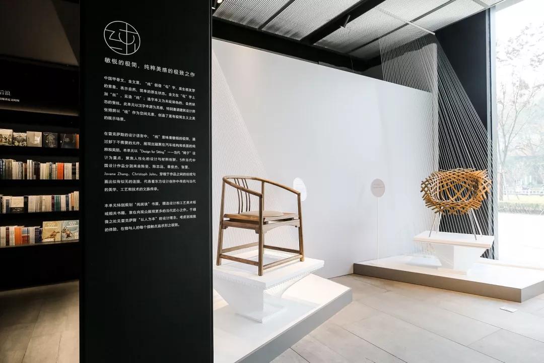 在第二单元“纯”中,看到了是艺术家们设计的5张椅子。张雷、陈旻、章俊杰、陈志远等当代艺术家通过对传统元素进行解构、重组,聚焦以人为本的设计理念与日常材料再创造,选择性的提炼了“椅子”设计中的纯粹与精髓——结构,美感,人体工程……