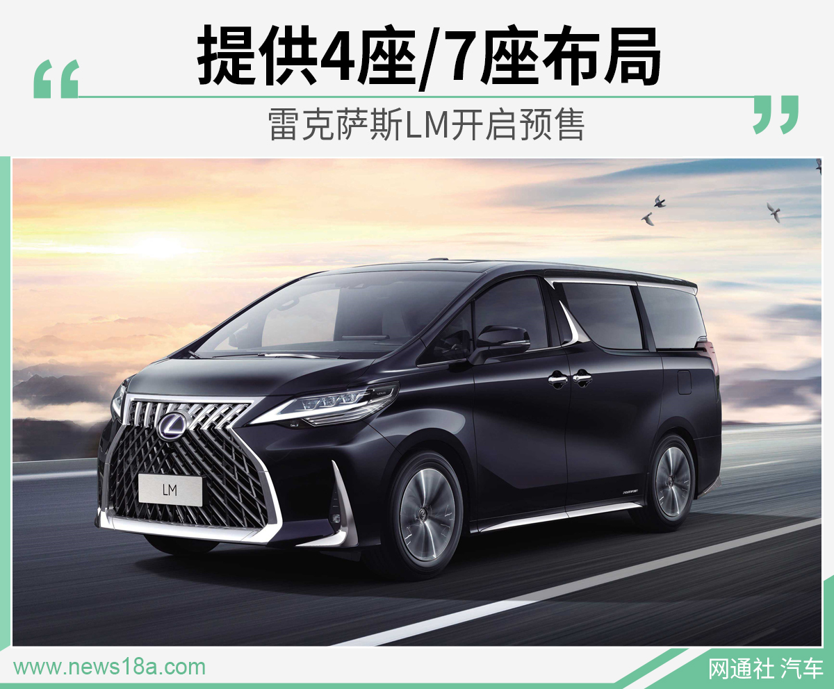 1月15日,网通社从雷克萨斯官方获悉,旗舰级豪华MPV全新雷克萨斯LM正式开启预售,全新雷克萨斯LM 300h共推出两款车型:七座隽雅版及四座御世版,新车将于2020年2月24日正式发售,厂商建议零售价分别为人民币116.6万元及146.6万元。