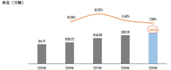 2019年全年,二手车市场增速回落至7.96%,全年累计交易1492.28万辆,超额完成1450万辆目标;全年累计交易金额为9356.86亿元,同比增长8.76%。