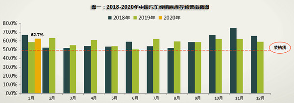 上周五(2月7日),中国汽车流通协会发布数据显示,今年1月汽车经销商库存预警指数为62.7%,同环比分别上升6.5和6.3个百分点,库存预警指数依然位于警戒线之上。这也是该指数自2018年1月以来,连续第25个月在警戒线之上。