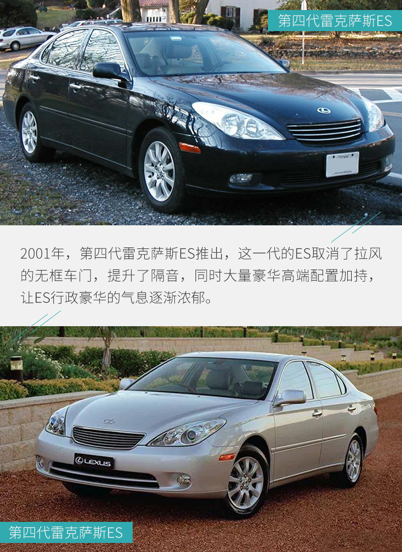 在初代雷克萨斯LS面世的同年8月份,雷克萨斯便推出了初代雷克萨斯ES,不过相比于雷克萨斯LS,初代雷克萨斯ES更像是配红花的绿叶,除了在内饰上多使用了一些豪华用料、配置外,其它跟当时的丰田凯美瑞并没有什么区别,也并没有引起初代雷克萨斯LS那样强的轰动效应。