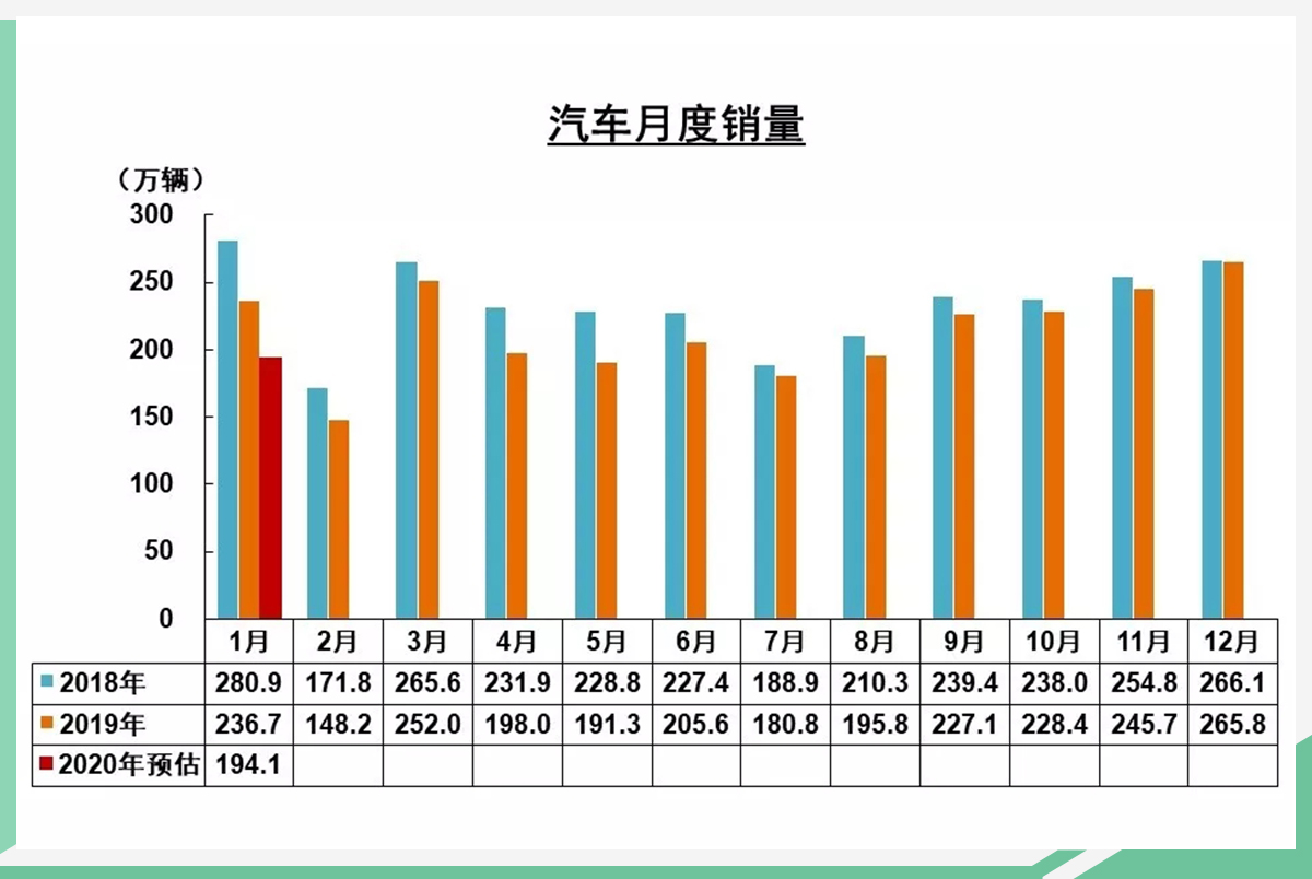 2020年春节假期在1月份,有效工作日的减少是1月份产销下降的主要原因。而1月下旬开始快速蔓延的新冠肺炎疫情导致的供应链问题、市场问题、零部件中小企业资金压力问题等,使得本来就下行压力较大的汽车行业更是“雪上加霜”。
