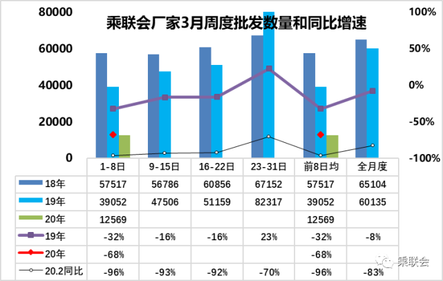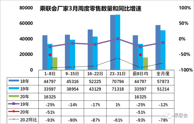 [摘要]3月1-8日的乘用车市场零售表现较强,第一周日均零售16325辆,同比增速下降51%。