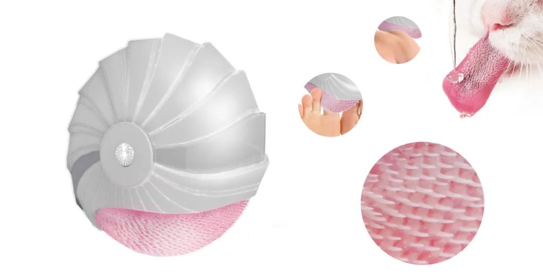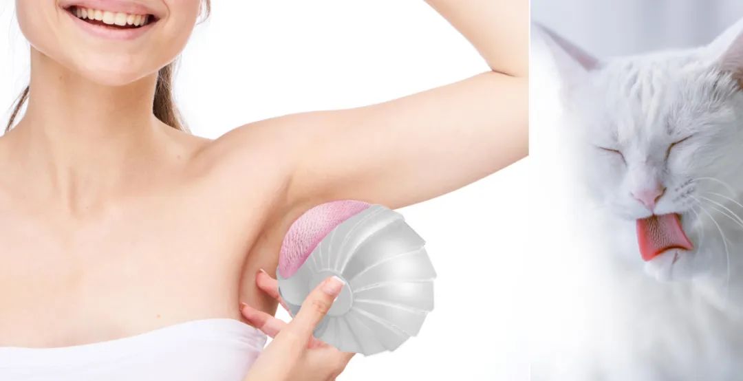 拥有如猫舌般的清洁面设计的便携式身体清洁器,专为沐浴困难人群而打造。