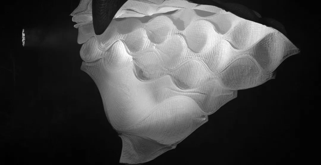 毛毡呼吸云是一款采用毛毡和热塑性塑料制成的呼吸垫,可以捕获噪声,并定制室内声学和照明特质。其目的是通过将热塑性塑料与工业毛毡相结合的方式,开发出一种技术纺织品,最开始将增材制造作为一种创造复合材料的工艺。