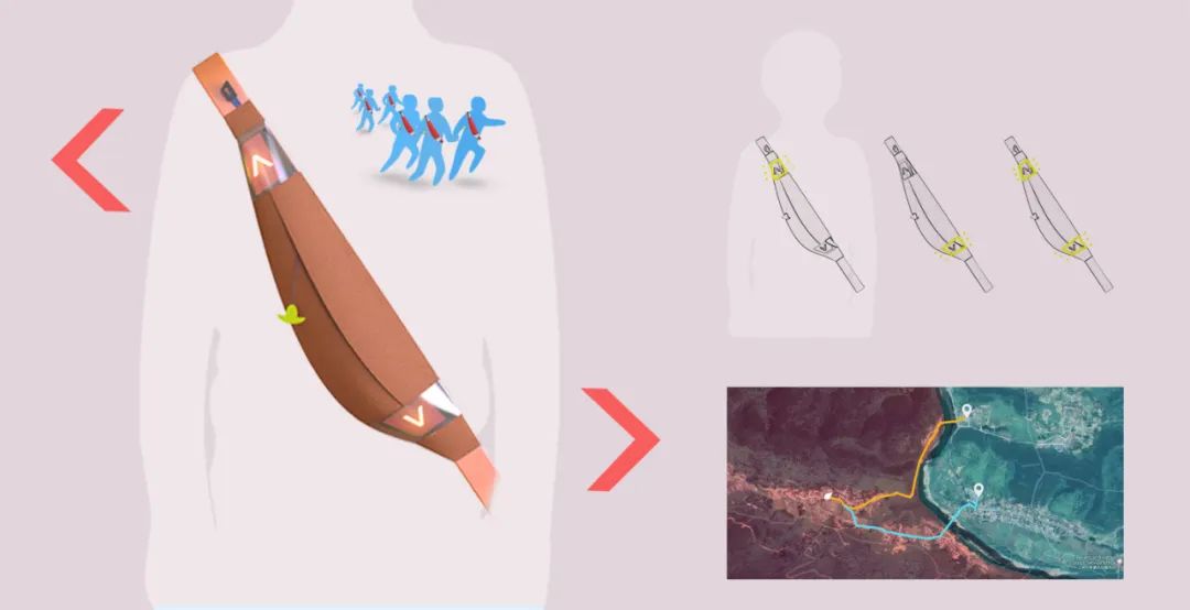闪光救生器是一种智能救生设备(个人漂浮装置),专门为处于暴洪泛滥地区学校的学生群体而设计。闪光救生器存放在学校,易于供每位学生取用,紧急撤离时可分发给学生。其设计感舒适,与身体贴合,易于穿戴和操作。该设计具有以下多种关键特征,包括:一个网状网络装置、一个触觉导航系统和一个漂浮装置。