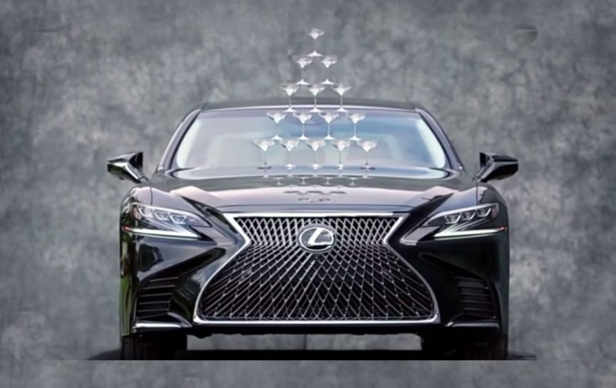 当时为了展示LS初代极致的NVH性能,品牌方拍摄了广告短片,为LS 400的引擎盖上放上了香槟杯塔,并启动引擎,纹丝不动的香槟杯塔让观众惊艳不已。而在最新代LS500的发布现场,这一幕再次重现。