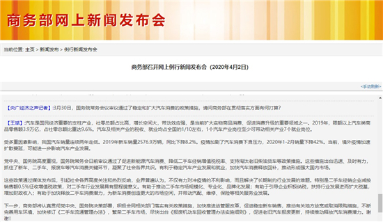 在昨日举行的商务部网上例行新闻发布会上,王斌介绍,汽车是国民经济重要的支柱产业,社零总额占比高,增长空间大,带动效应强,是当前扩大实物商品消费、促进消费升级的重要领域之一。2019年,限额以上汽车类商品零售额3.9万亿,占社零总额比重达9.6%。汽车及相关产业的税收、就业均占全国的1/10左右,1个汽车产业岗位至少可带动相关产业7个就业岗位。