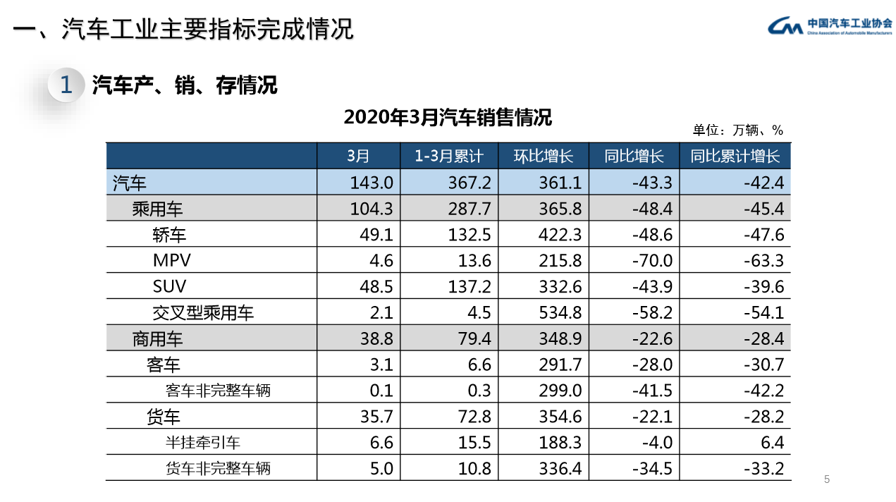 [汽车之家 行业] 日前,中国汽车工业协会(以下简称“中汽协”)公布了最新一期中国汽车市场销量数据:2020年3月,中国汽车产销量分别为142.2万辆和143万辆,较去年同期分别下滑44.5%和43.3%。至此,中国汽车市场已经连续21个月销量同比下滑,仍未能实现“触底反弹”。