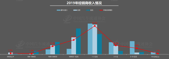 经营方面,2019年经销商亏损面扩大至41%,盈利经销商比例减少至29.7%。全年营收在1亿-3亿元范围内的经销商占比最多,约为41.4%,另有2.7%的经销商年收入不足千万元。