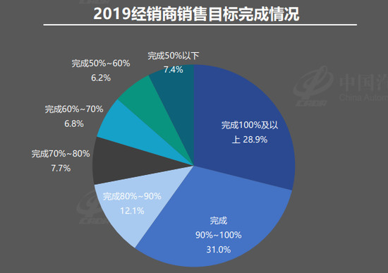 经济日报-中国经济网4月17日讯(记者 陈梦宇) 昨日,中国汽车流通协会在“中国汽车流通行业蓝皮书论坛”上介绍 ,2019年,完成全年销售目标的经销商占比仅为28.9%,7.4%的经销商目标完成率在50%以下。车市的连年下滑,造成众多经销商处于亏损状态。