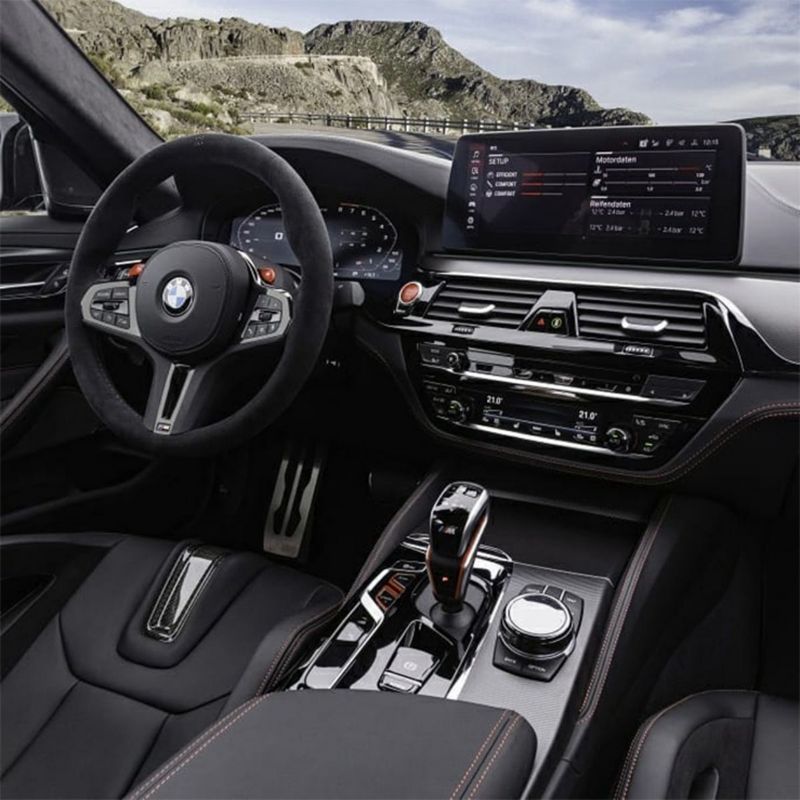 内饰方面,和M5雷霆版保持一致,这款车采用Alcantara和真皮两种材料,用户可以选装Merino真皮、电动头枕调节以及M运动座椅。布局方面,该车采用现款车型的液晶仪表盘和中控屏并配有iDrive系统。