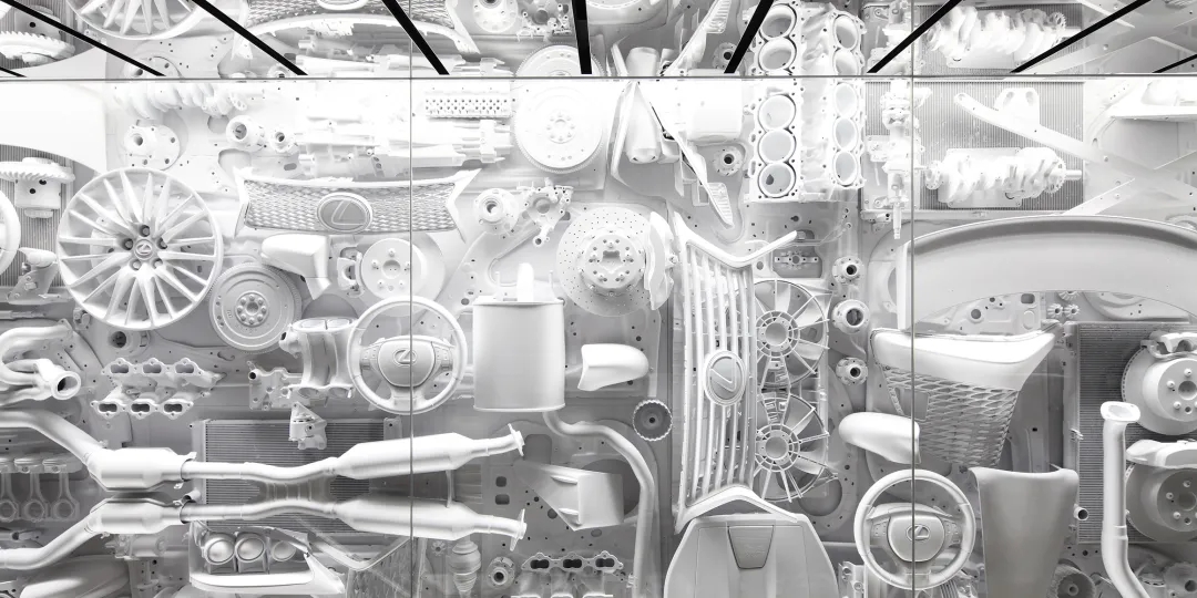 这里面的设计别具一格,置身其间,仿佛就像身处在一个偌大的豪华汽车内部。放眼四周,墙上挂满了雷克萨斯的各种零部件和车模,让人忍不住想搬回家。
