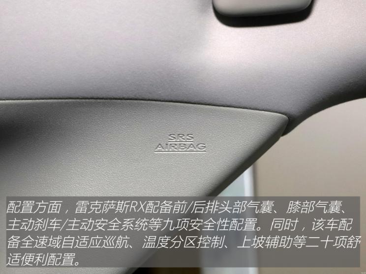 以上就是今天分享的实拍体验,下面就让我为大家总结一下。虽然雷克萨斯在国内的市场占有率比不上BBA,但它旗下产品的实力还是值得肯定的,比如我们今天实拍的雷克萨斯RX(参数|询价),它豪华的内饰和霸气的外观能吸引到一部分的消费者,同时这款车的配置也很丰富,舒适性等方面的体验都显得物有所值。