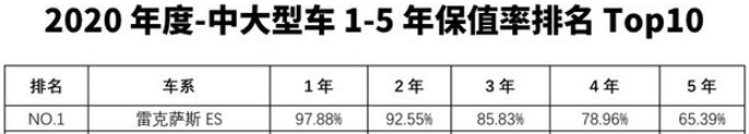 ↑雷克萨斯ES位列细分市场保值率前列(数据来源:中国汽车流通协会)