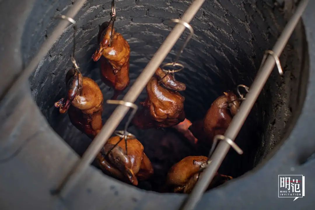 而在柴火的选择上,古井烧鹅采用的是岭南特有的荔枝木,这种木柴需要自然风干两年,让油脂与水分自然流失。然后放进传统的泥炉中以150—180℃恒温烧制,不给烧鹅带来烟味,并让鹅只色泽透亮且带有荔枝木清香。