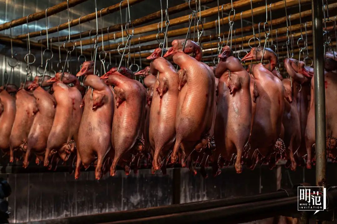 美丽的传说为古井烧鹅增添传奇的色彩,但古井烧鹅的魅力是扎根在色、香、味中的独特元素与其古色古香的制作方法。烧鹅师傅三哥告诉我们,正宗的古井烧鹅要选用五十到六十天的妙龄鹅,再经过桂心陈皮的秘制湿料一边烧一边补充水分,让烧鹅的口感脆而不干。
