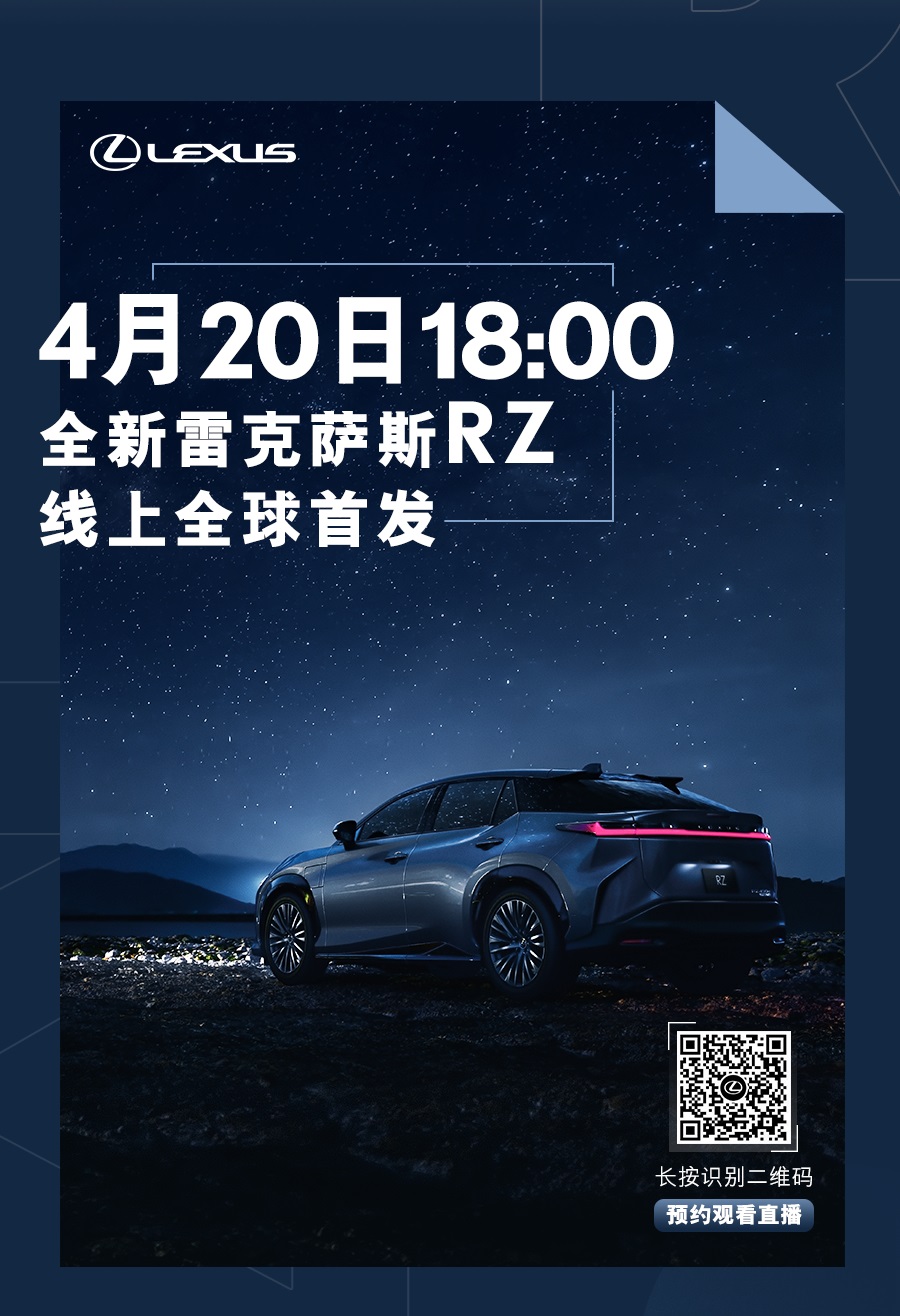 线上发布会将于北京时间2022年4月20日18:00正式开始。届时,敬请登录以下网址https://www.lexus.com.cn/reveal,或通过LEXUS雷克萨斯中国官方微信视频号、官方微博,观看全球直播发布会。