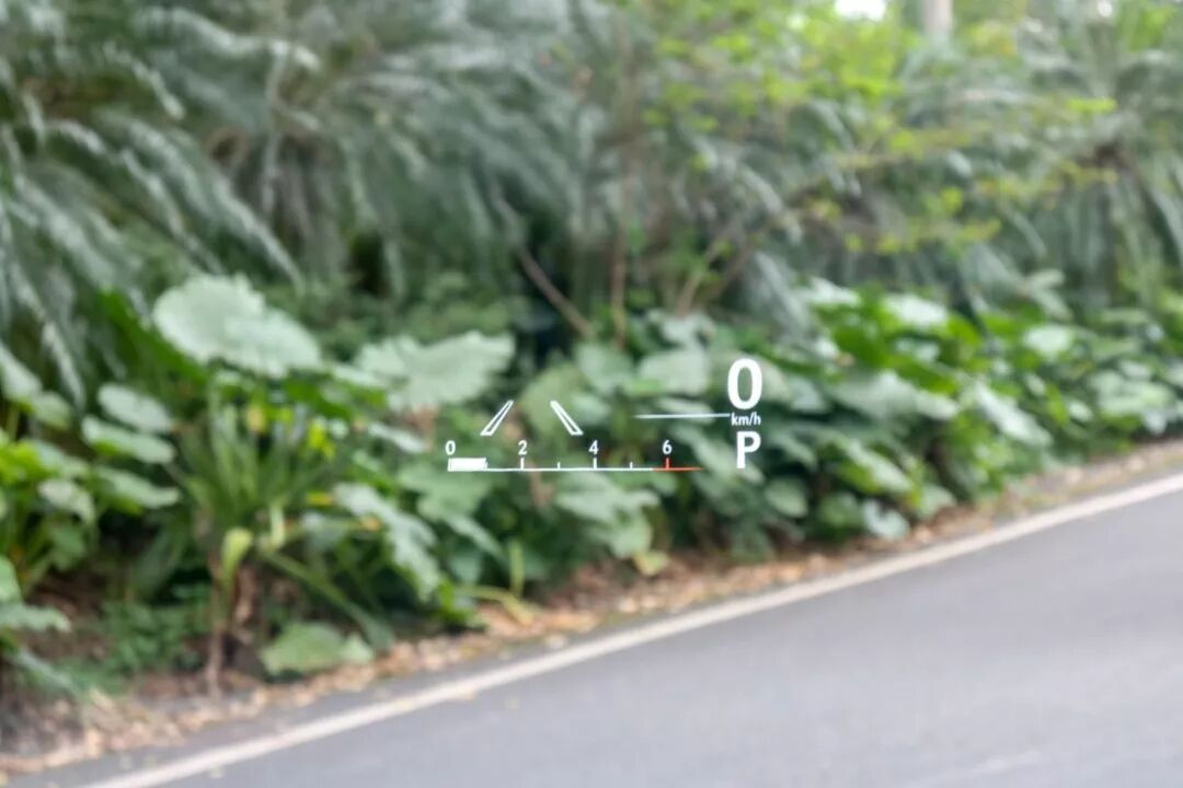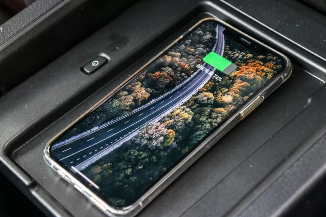 手机无线充电位于中央扶手箱内部,所以在使用时还是有点不太方便,而HUD抬头显示有几种模式可选,而且在导航时HUD也会显示导航信息,对于驾驶员有一定的帮助。