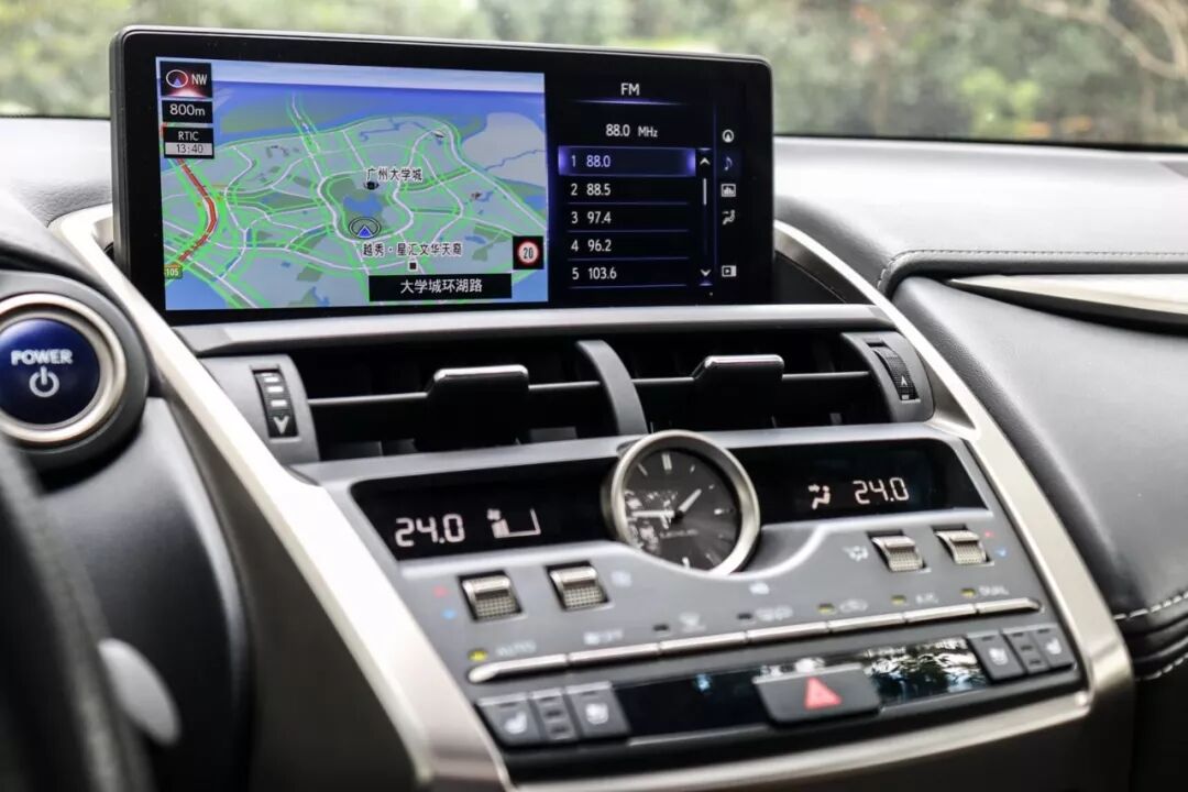 NX300h搭载10.3英寸液晶屏,而升级版的触控式 Remote Touch信息操作系统则更加人性化,并且整个界面设计都采用了大量蓝色元素作为点缀,不过个人感觉这块触摸板并不是这么容易操作。相较于对手采用几块屏幕带来的科技感而言,Lexus用下方豪华精致的石英钟以及皮质的装饰来诠释自己对于豪华的理解。