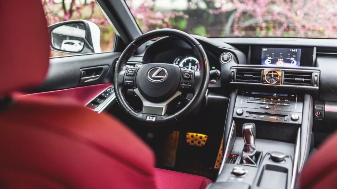 对于内饰的第一印象,虽然有着浓厚的战斗气息,但设计语言明显是几年前的。交互界面采用旋钮模式,显得有些陈旧。屏幕比近些年的雷克萨斯新车型小很多(顶配的IS300豪华版采用大屏和全新的Remote Touch)