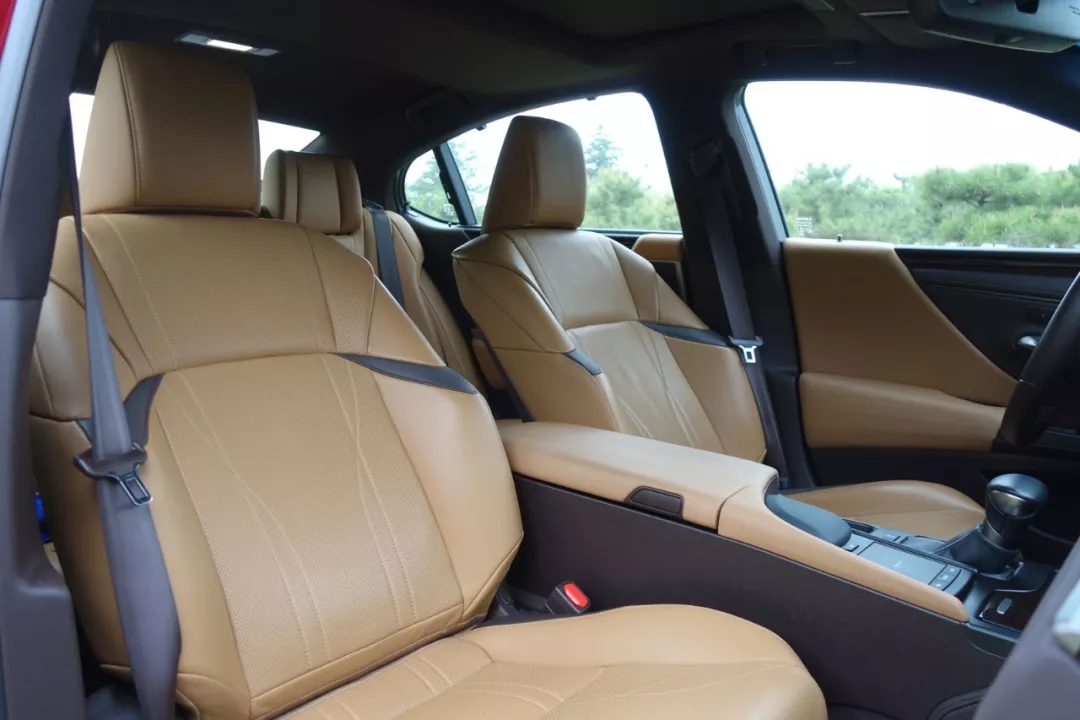 这台顶配的行政版ES300h车内豪华感确实值得点赞,除了半苯胺真皮的贡献之外,车厢内其他部位的用料、触感都有足够的豪华感,真皮的触感很好,没有味道。