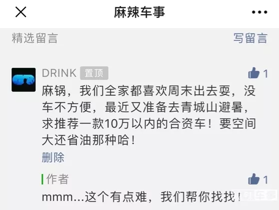 前几天,粉丝DRINK给麻辣车事留言,暑期到了,为了避开乌泱乌泱的人群,他想利用每个周末,带着老婆和孩子在成都周边游,但是,没有车又非常不方便,所以,希望麻辣车事给他推荐一款车。他的预算只有10万左右,还需要买合资车型,而且需要品质和操控以及空间都很棒的车。